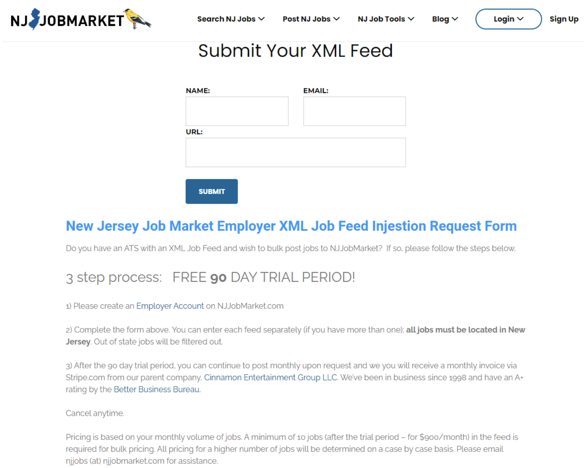 - Complete Submission Form on https://www.njjobmarket.com/xml-feed-submission/