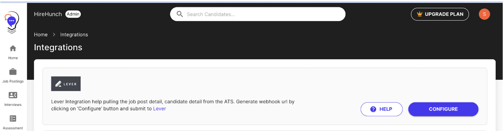 Set up the ‘HunchAssess' custom interview stage in Lever