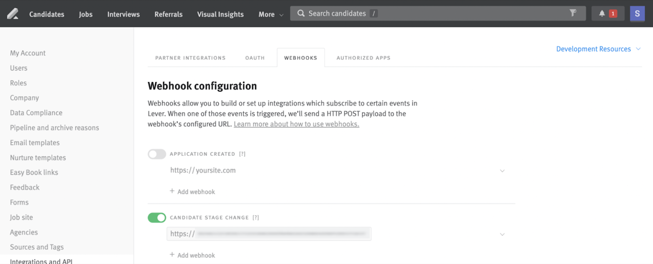 Once the webhooks are configured, the Lever <> HireHunch integration will be complete.